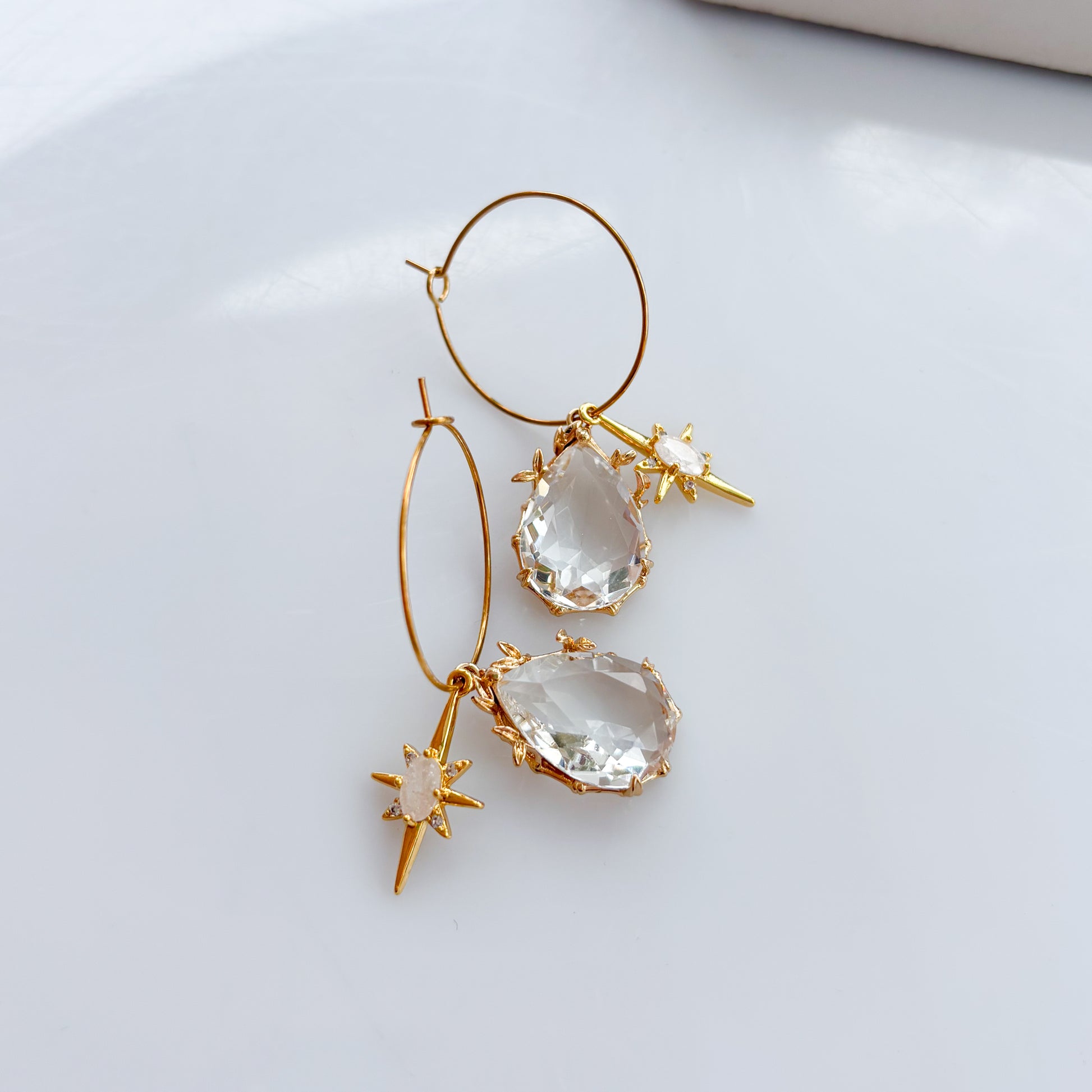 CRYSTAL TEARDROP & STAR CHARM HOOP EARRINGS