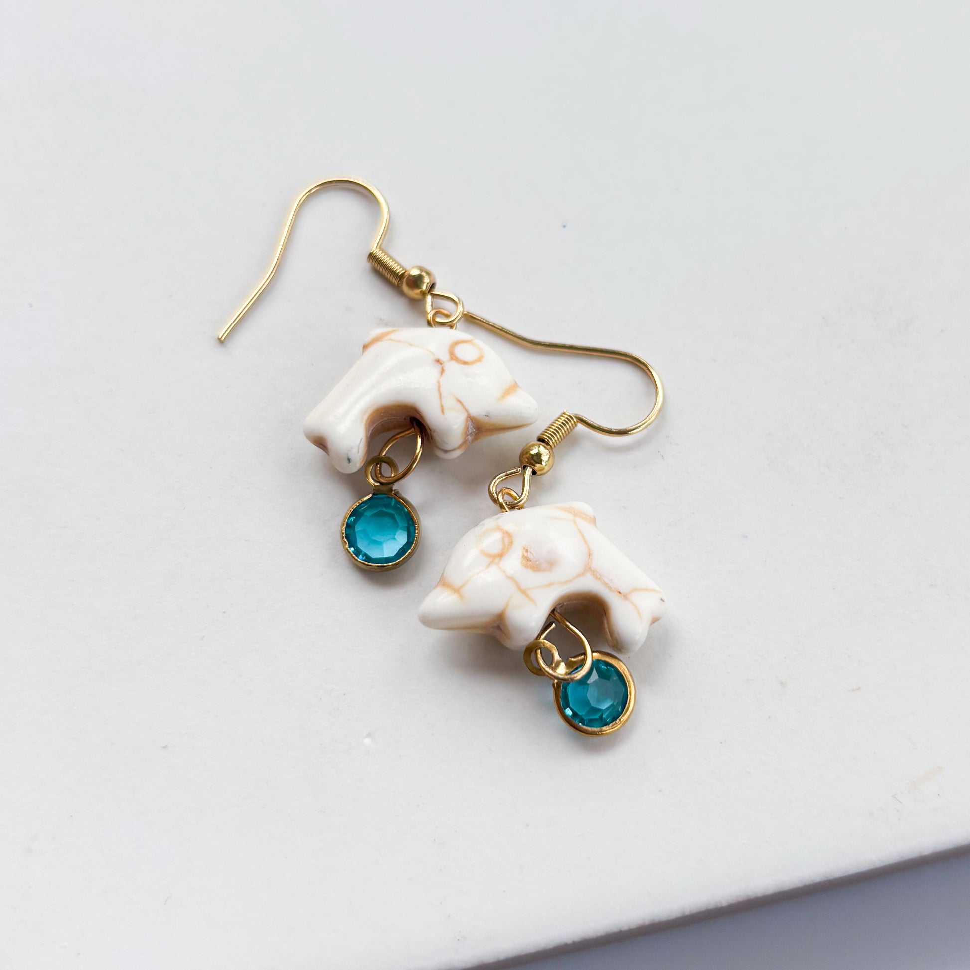 DOLPHIN & BLUE GEM CHARM EARRINGS