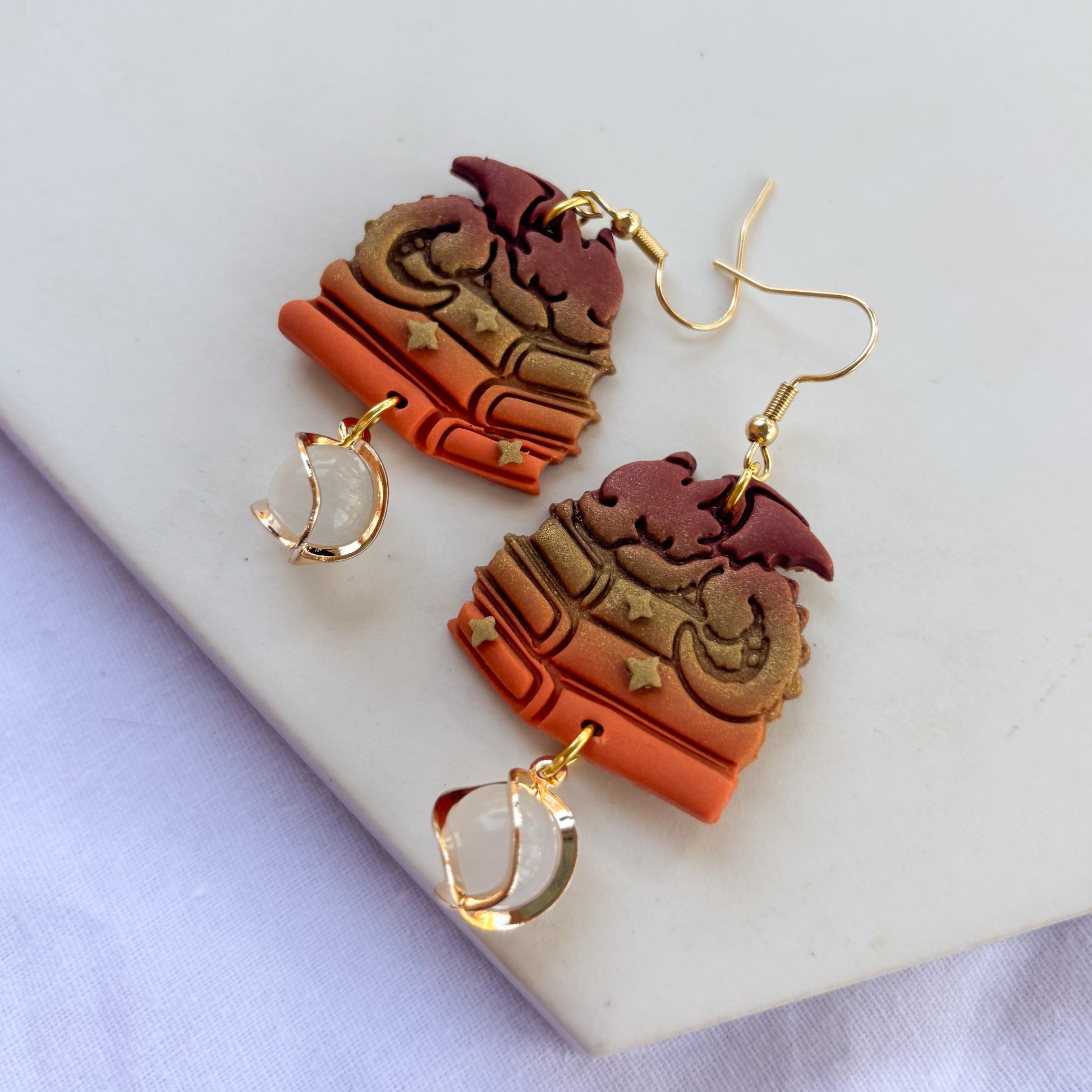 DRAGON ON BOOKS EARRINGS (BRICK BRONZE ORANGE)