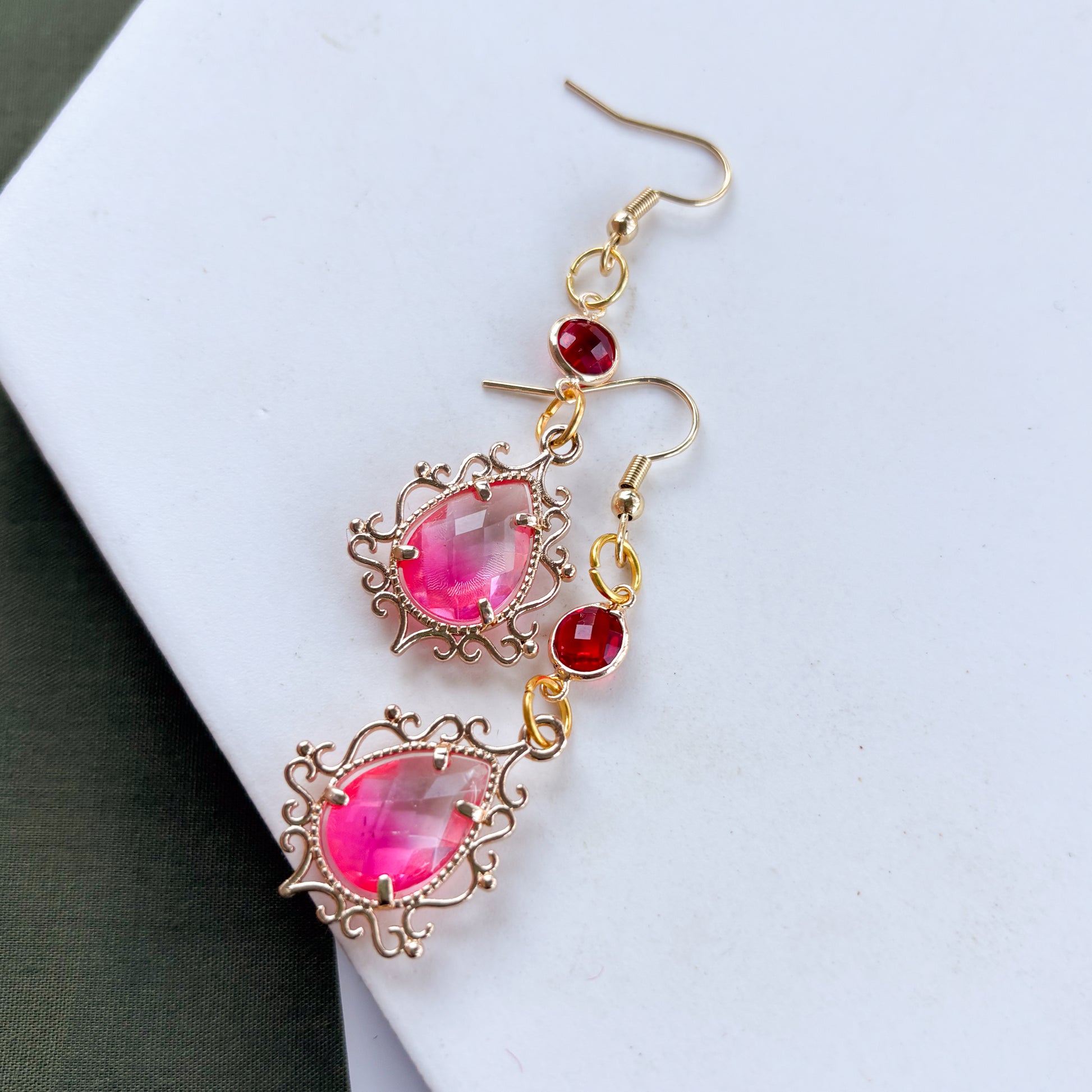 PINK & RED ORNATE GEM CHARM EARRINGS