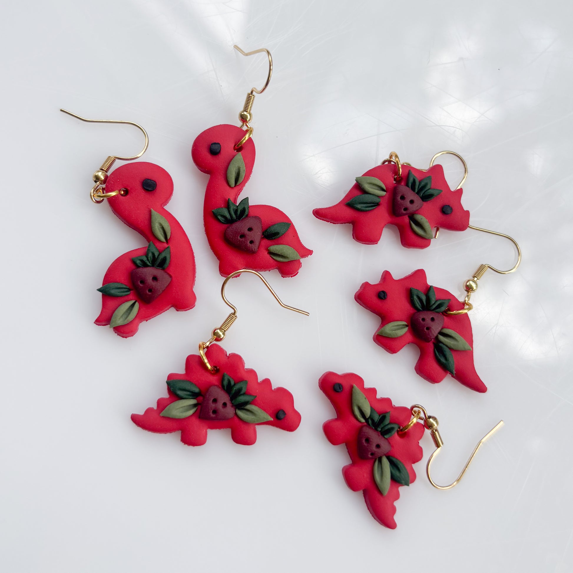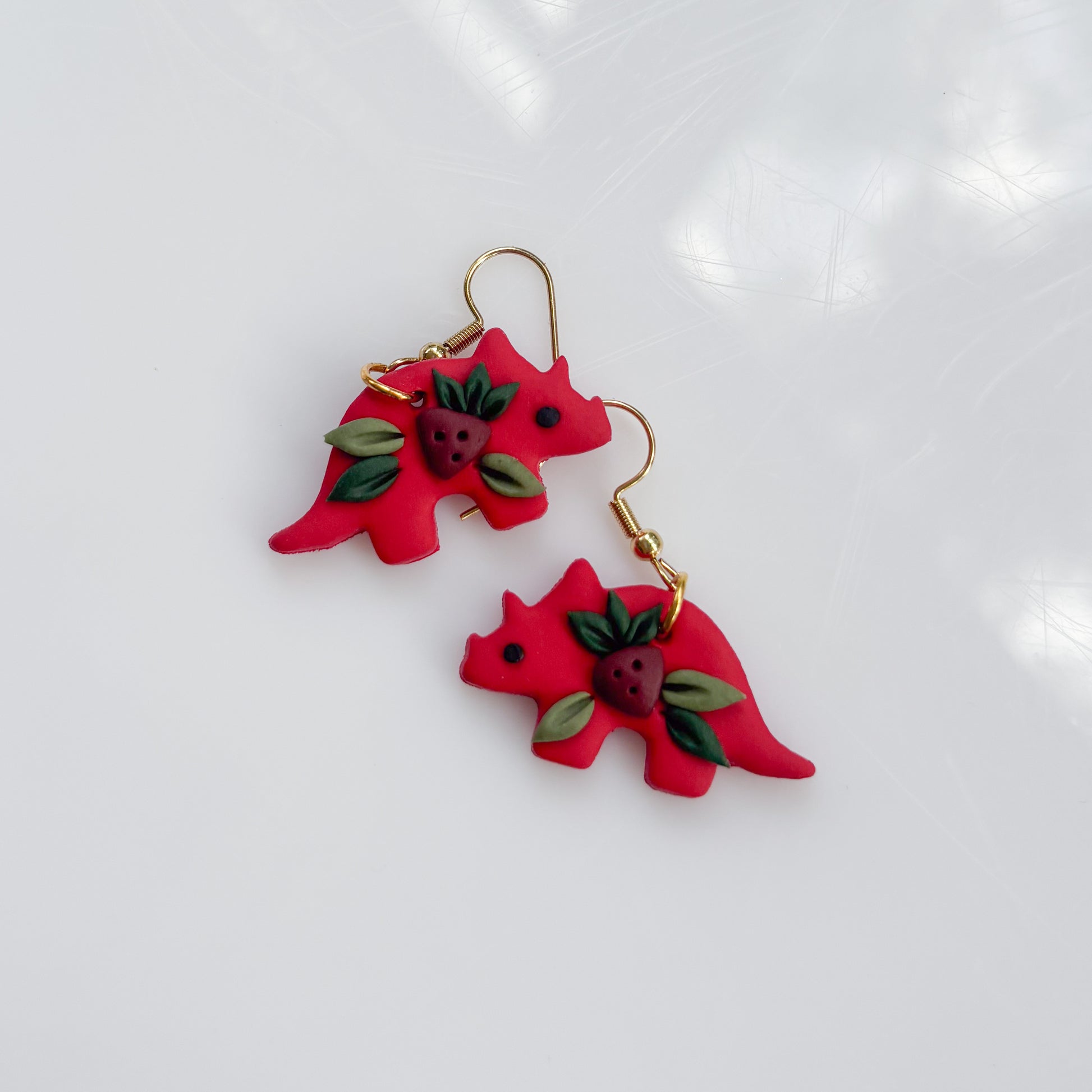 RED STRAWBERRY DINO EARRINGS (TRICERATOPS)