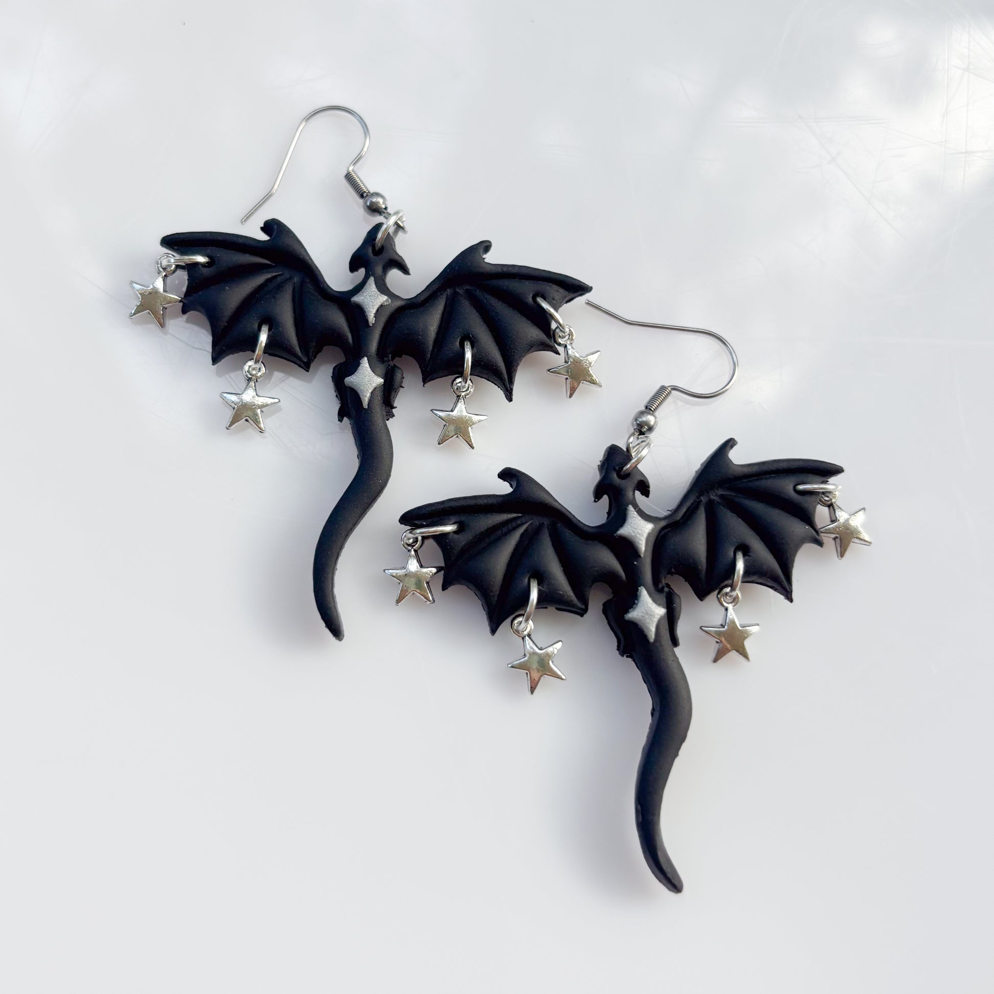 SILVER STAR BLACK DRAGON EARRINGS